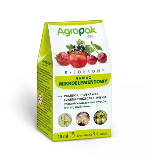 Betokson – skoncentrowany, płynny nawóz mikroelementowy do stosowania w uprawie pomidora, truskawki, porzeczki czarnej oraz wiśni. Produkt o odpowiednio dobranej formule dostarcza niezbędnych mikroskładników jak bor i molibden, co sprzyja zawiązywaniu owoców i prawidłowemu rozwojowi zawiązków. W efekcie takiego działania przyczynia się do wzrostu wielkości i jakości plonu.