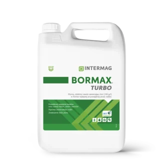 BORMAX TURBO to płynny nawóz dolistny zawierający 150 g boru (B) w 1 litrze w formie boroetanoloaminy dodatkowo wzbogacony w Technologię INT, ułatwiającą pobieranie i przemieszczanie boru w roślinach.
