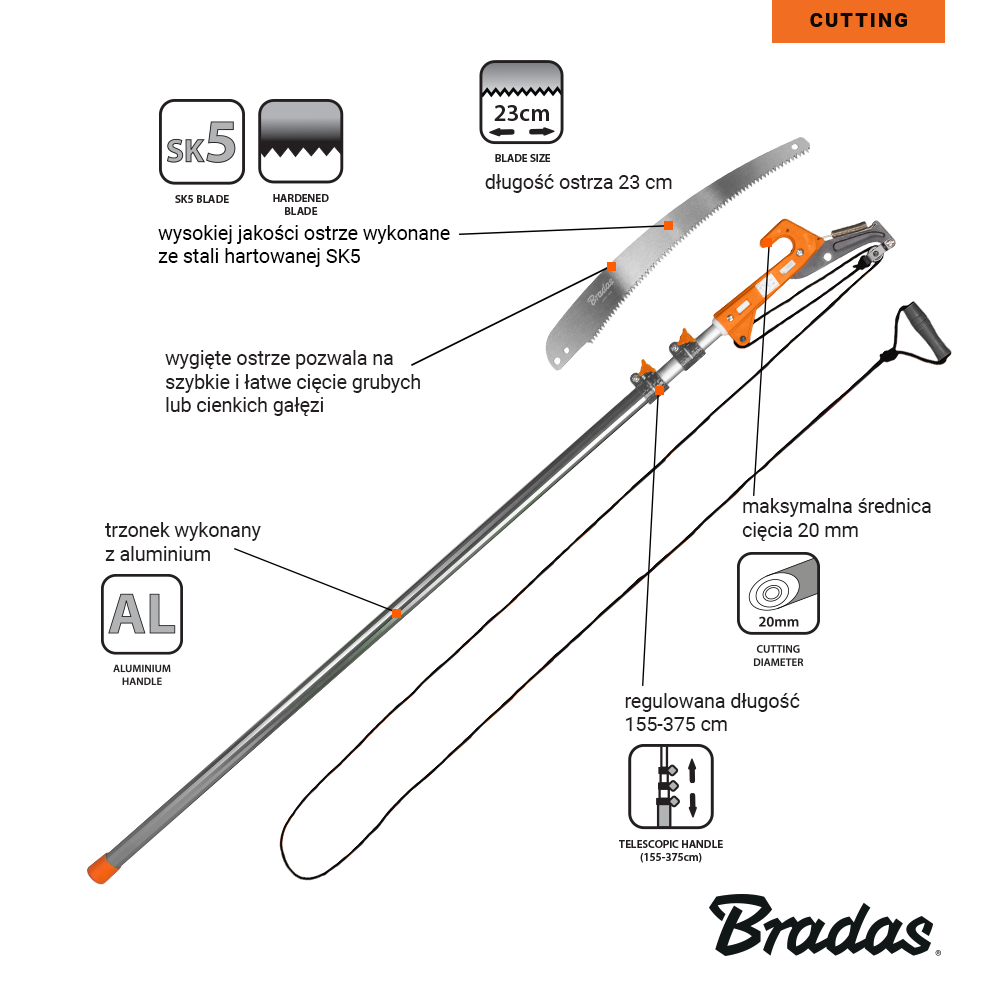 Piła z sekatorem V-SERIES-P na teleskopowym trzonku 3,75m
