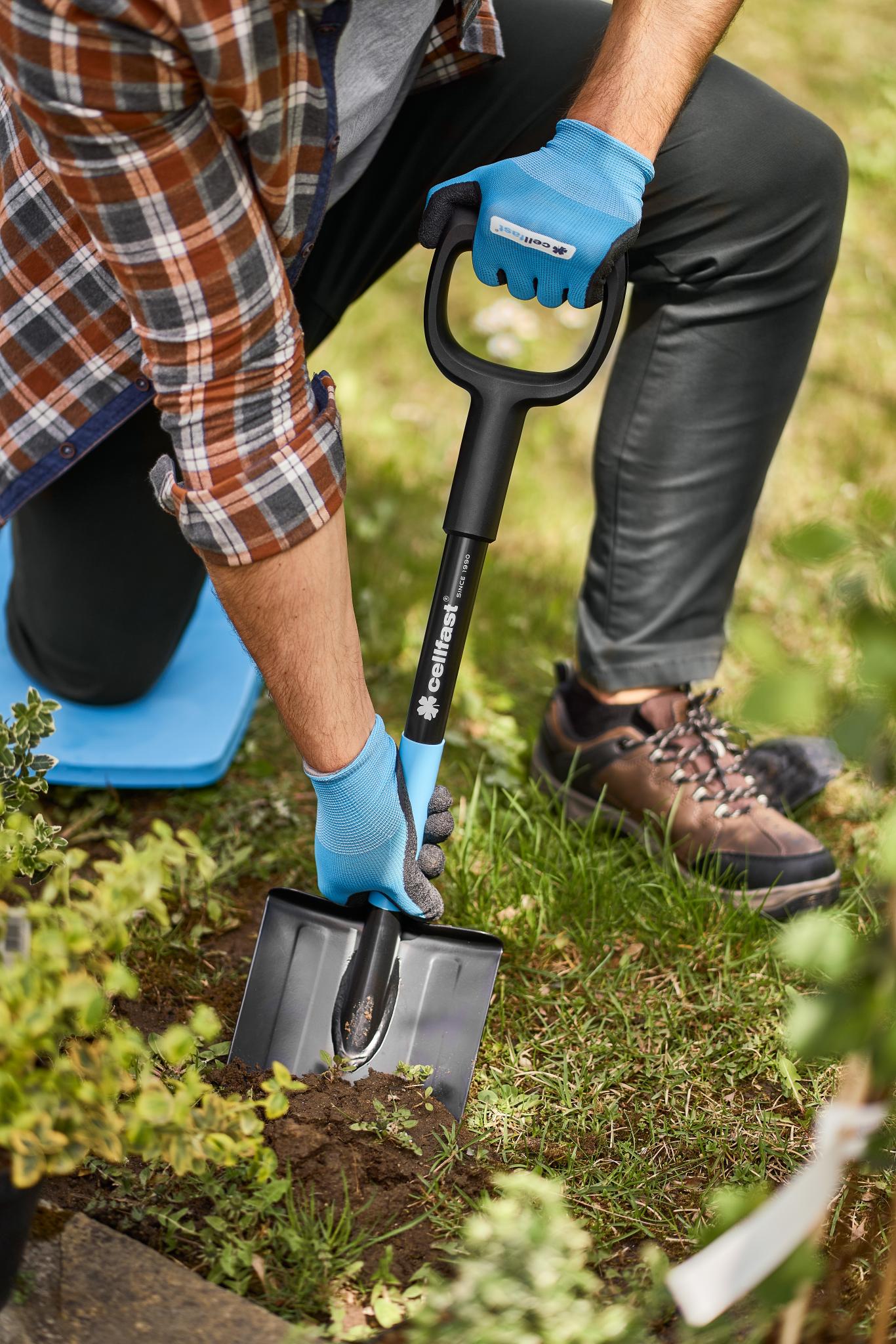 • przeznaczony do pracy w twardej glebie, umożliwia łatwe i bezpieczne wykopywanie, sadzenie, przekopywanie oraz usuwanie korzeni