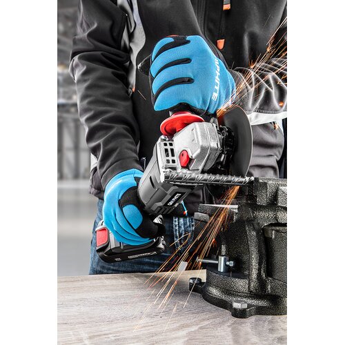 Szlifierka osiąga prędkość 10000 obrotów na minutę i umożliwia komfortową pracę. Wyposażona jest w tarczę o średnicy 125 mm oraz gwint wrzeciona M14. Posiada możliwość bezkluczykowego montażu osłony.