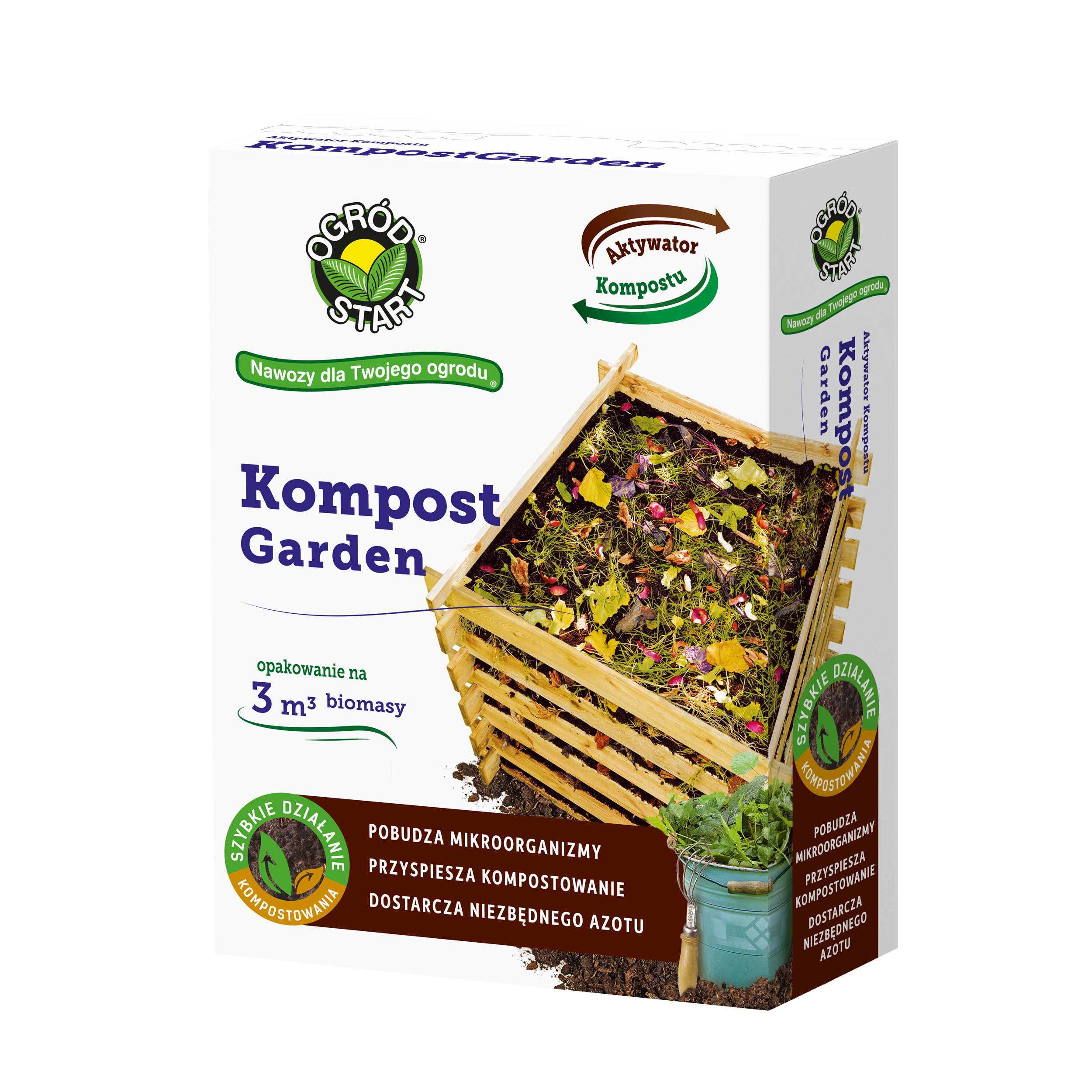 Kompost Garden to nowoczesny produkt, w granulowanej formie, przyspieszający kompostowanie. Przy regularnym stosowaniu na pryzmę kompostową lub materie w kompostowniku uzupełnimy niedostatki azotu w kompostowanym materiale, dzięki czemu mikroorganizmy wytwarzające kompost mogą się optymalnie rozwijać. Powstały kompost jest niezwykle bogatym nawozem organicznym, wzbogacającym glebę w próchnicę, co ułatwia prawidłowy rozwój strefy korzeniowej i optymalne pobieranie składników pokarmowych przez rośliny.