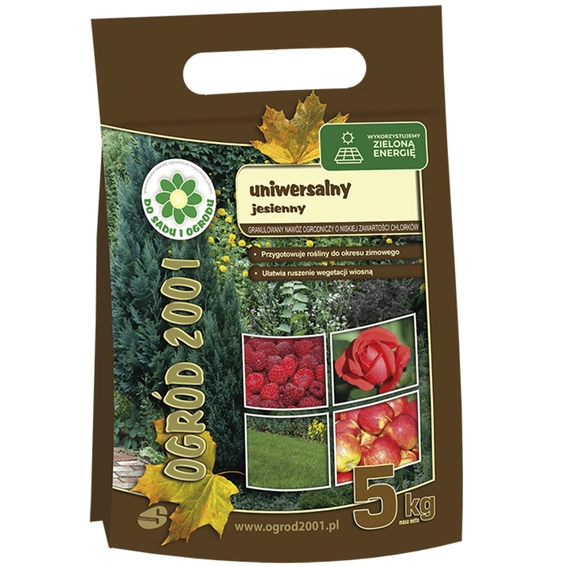 Ogród 2001 Uniwersalny Jesienny to nawóz do wszystkich rodzajów roślin. Występuje w postaci granulatu. Jest uniwersalny – można nawozić nim każdą roślinę występującą w Twoim ogrodzie.