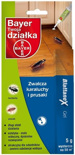 Blattanex Gel – gotowa do użytku trutka w postaci żelu – nowoczesna formulacja i atrakcyjny pokarm przyciągają insekty – wysoka skuteczność zwalczania już po kilku dniach – długi okres działania – produkt wysokowydajny, jedno opakowanie wystarcza do zabezpieczenia na 50 m2 powierzchni – nie zanieczyszcza środowiska