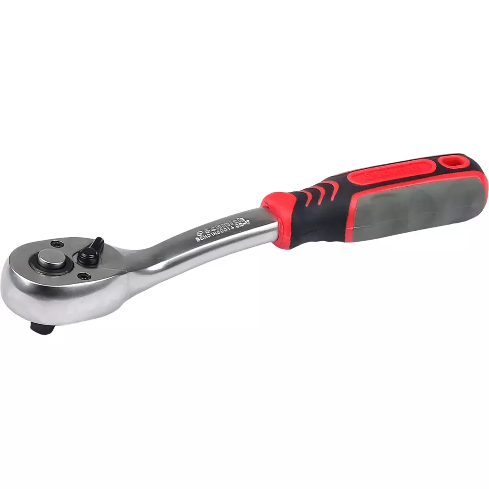 Odgięta grzechotka z precyzyjnym mechanizmem zapadkowym, posiadającym 72 zęby. Wykonana została z wytrzymałej stali chromowo-wanadowej, odpornej na uszkodzenia i rdzewienie.