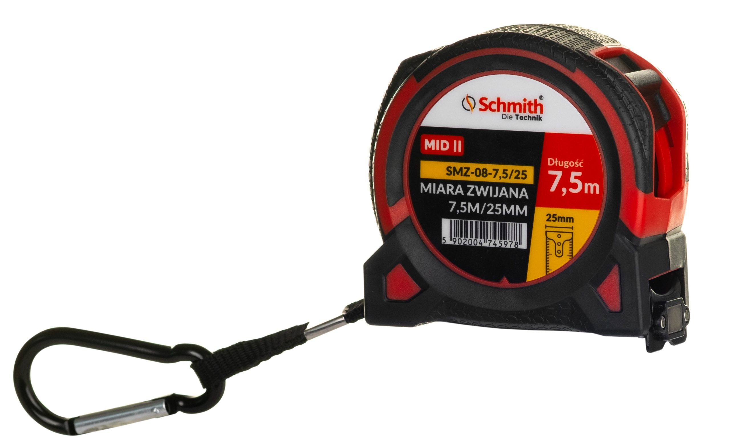 █ Miara zwijana 7,5m/25mm Obudowa z materiału ABS + TPE- odporne na uderzenia. Posiada praktyczny zaczep do paska oraz pasek zakończony karabińczykiem. Obustronna taśma miernicza o standardzie CE MID II o wyraźnej, dużej podziałce, zakończona hakiem magnetycznym, odporna na ścieranie. Podział na cm i mm po obu stronach taśmy. Automatyczne cofanie taśmy. Stoper do zatrzymywania i blokowania cofającej się taśmy. █ DANE TECHNICZNE ✅ PRODUCENT: ✅ SYMBOL / KOD: SMZ-08-7,5/25 ❌ ŚREDNICA: – ✅ DŁUGOŚĆ: 7,5m/25mm. ❌ SZEROKOŚĆ: – ❌ ROZMIAR: – ❌ OBJĘTOŚĆ: – ❌ UCHWYT / MOCOWANIE: – ❌ TYP: – ✅ JEDNOSTKA MIARY: szt. ✅ ILOŚĆ SPRZEDAŻOWA: 1 szt. ✅ ILOŚĆ W OPAKOWANIU: – ✅ KOD EAN: 5902004745978
