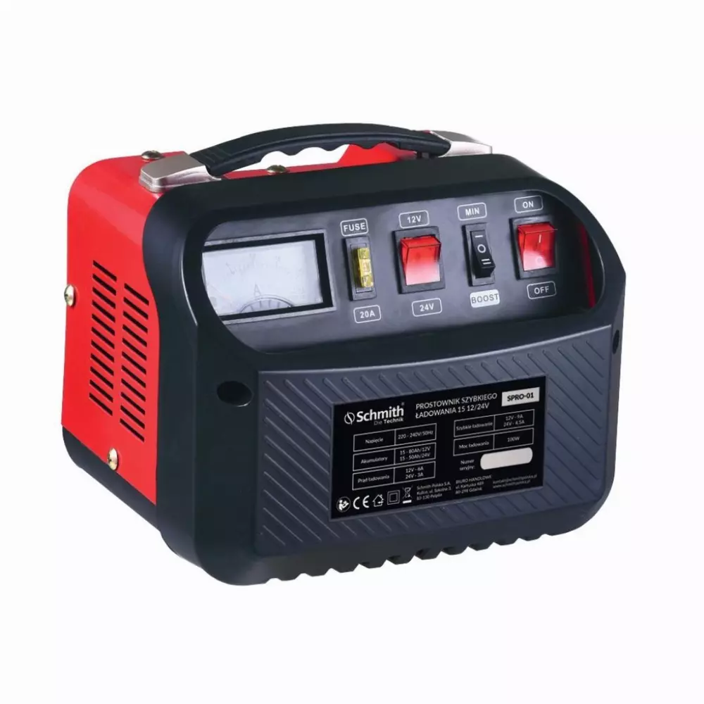 Urządzenie przeznaczone jest do ładowania akumulatorów kwasowo-ołowiowych, stosowanych w silnikach, motocyklach, łodziach oraz dużych pojazdach. Ten wydajny prostownik z funkcją rozruchu to niezastąpione narzędzie dla warsztatów, mechaników i właścicieli pojazdów wymagających pewnego wsparcia rozruchowego. Dzięki wysokiej mocy rozruchowej, urządzenie poradzi sobie z uruchamianiem dużych silników nawet w trudnych warunkach. Prostownik charakteryzuje się solidną konstrukcją i łatwością obsługi, a wbudowane zabezpieczenie zapewnia bezpieczne użytkowanie. Przed podłączeniem i użytkowaniem urządzenia prosimy o dokładne zapoznanie się z instrukcją obsługi.