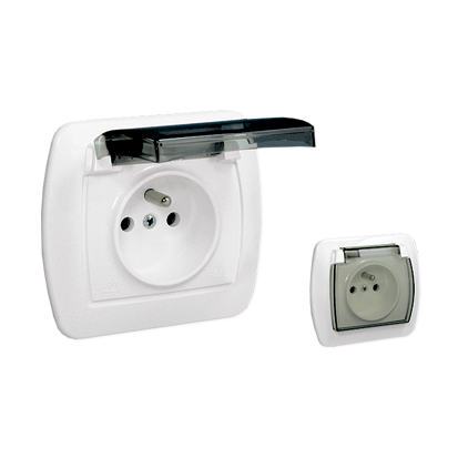 gniazdo wtyczkowe pojedyncze z uziemieniem – w wersji IP44 – klapka z kolorze transparentnym