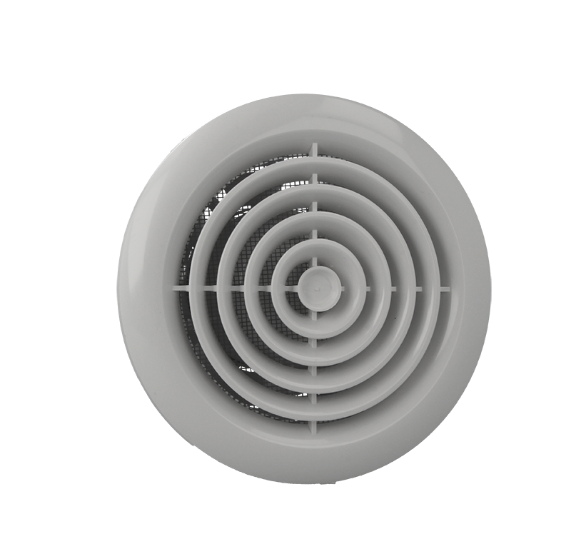 - Okrągły panel frontowy o koncentrycznym układzie otworów, ułatwiającym dystrybucję powietrza w przypadku montażu sufitowego