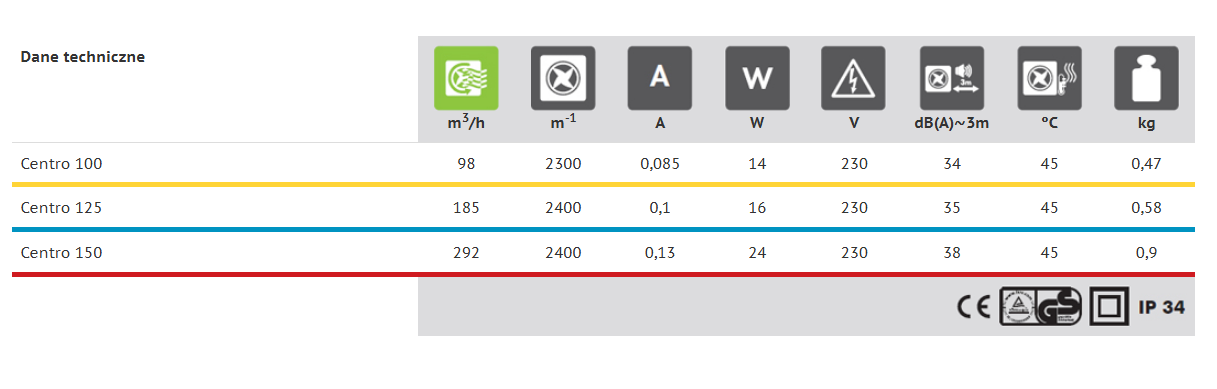 - Niezawodny silnik na łożyskach kulowych o niskim zużyciu energii, przeznaczony do pracy ciągłej, nie wymaga konserwacji. Umożliwia montaż wentylatora pod dowolnym kątem