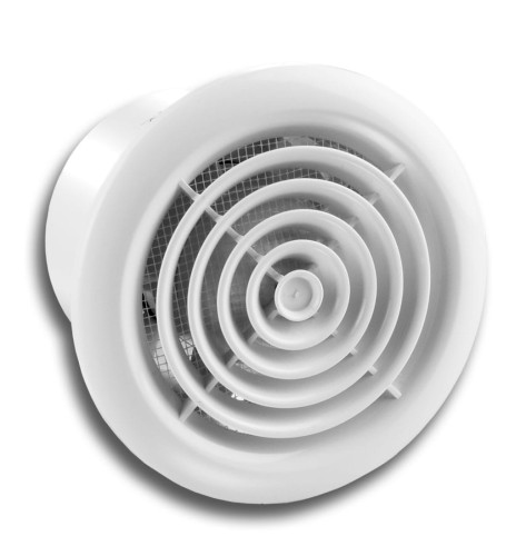 – Okrągły panel frontowy o koncentrycznym układzie otworów, ułatwiającym dystrybucję powietrza w przypadku montażu sufitowego