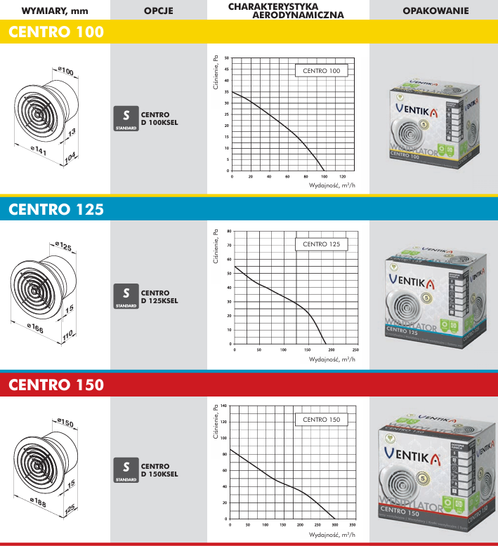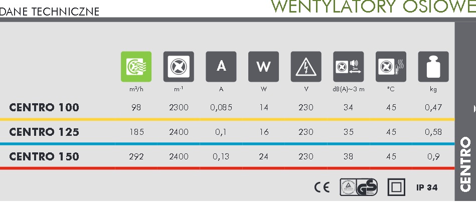 CENTRO D 125KSEL – Wentylatory osiowe przeznaczone do wentylacji wywiewnej, do montażu sufitowego i ściennego.