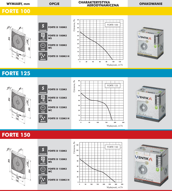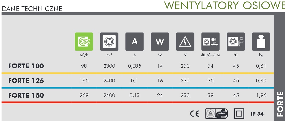 FORTE D 100M WC – Wydajne wentylatory osiowe w wersji z wyłącznikiem sznurkowym, przeznaczone do wentylacji wywiewnej.