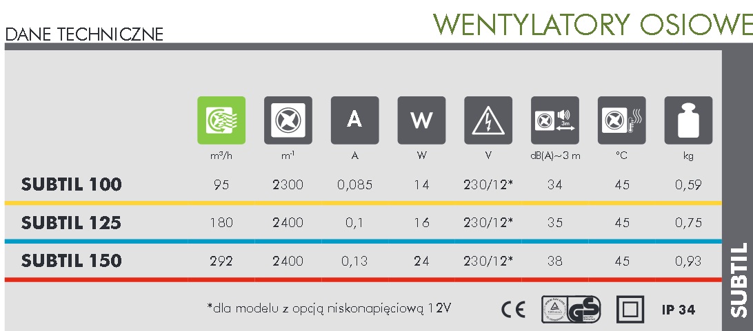 SUBTIL wentylator osiowy fi 100 mm, standard, biały