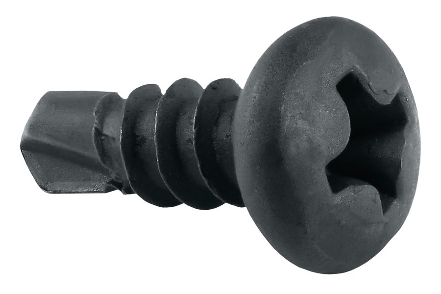 Konstrukcja gwintu gwarantuje pewne i trwałe mocowanie w podłożu stalowym. Końcówka wiercąca umożliwia przewiercanie blach o grubości do 2 x 1, mm.