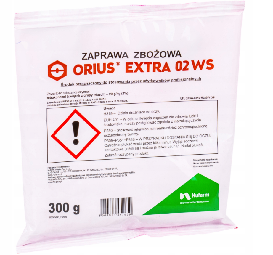 Zaprawa Zbożowa Orius Extra 02 WS jest skutecznym środkiem grzybobójczym w formie proszku do sporządzania zawiesiny wodnej.